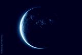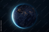 Planet Earth at night viewed from space, showing glowing city lights and illuminated atmosphere. Stunning satellite view of our planet in the vast. Beautiful Earth with Eurasia, Middle East, Africa