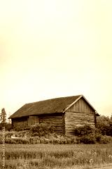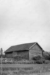 Rustic Wooden Barn Amidst Lush Greenery Under a Cloudy Sky