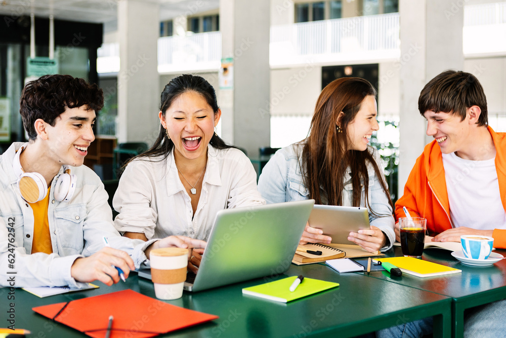 Young Seagull Chick Resting on a Rocky Outcrop Underneath a Lush Green Canopy