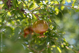 Pomegranate Fruit Hanging on a Tree Branch in a Sunny Garden During Summer