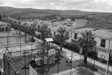 Outdoor Recreational Area Featuring Basketball Courts and Playground Equipment Near Residential Buildings in a Mountainous Region