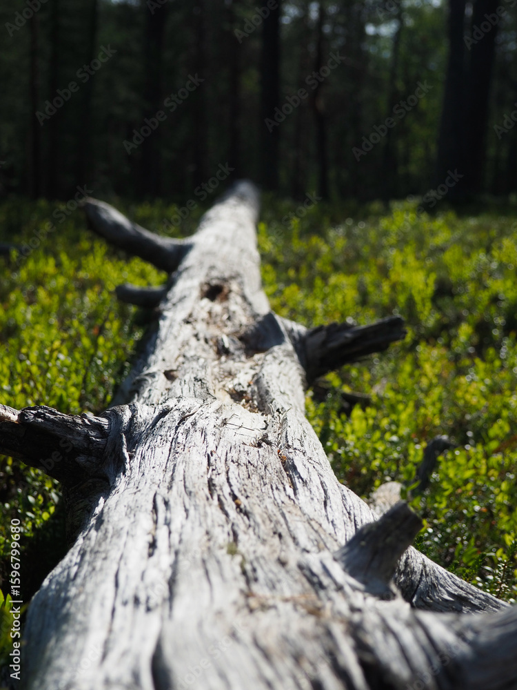 A Fallen Tree Trunk Amidst Vibrant Green Vegetation Under Sunlight