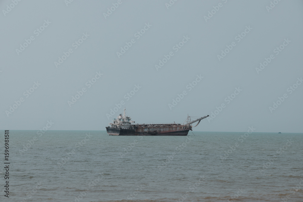 A Cargo Ship is Steadily Navigating Through the Calm and Tranquil Waters of the Ocean