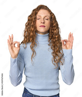 Simple redhead studio portrait who is bored, fatigued and need a relax day.
