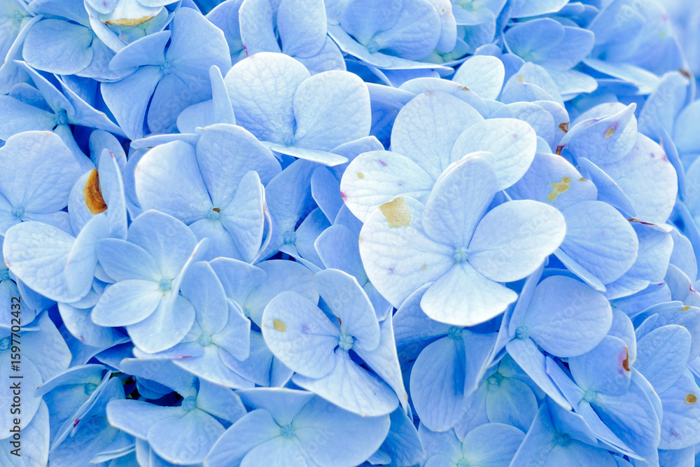 Close-Up Blooming Blue Hydrangea Flowers Background