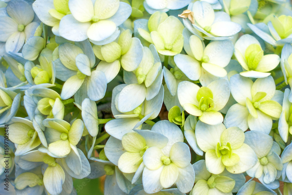 Close-Up Blooming Blue Hydrangea Flowers Background