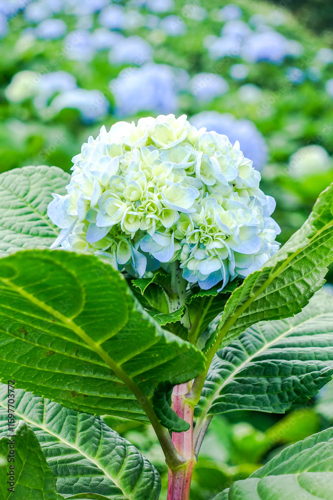 Blooming Blue Hydrangea Flowers in Natural Garden Setting