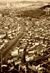 Vibrant view of urban landscape in Istanbul with structured roads and buildings