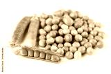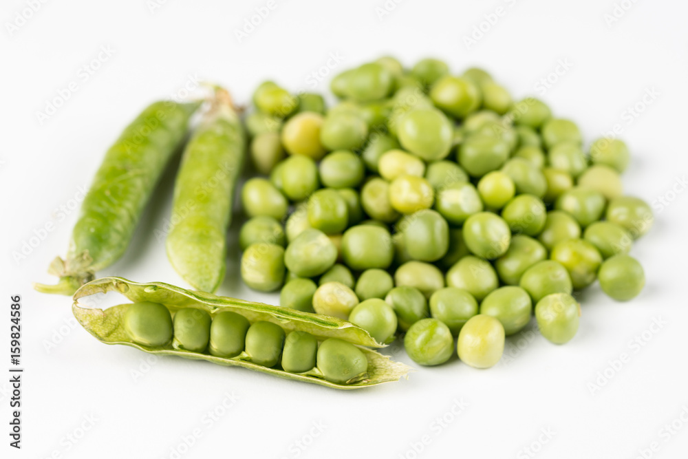 Pile of fresh raw green peas isolated over white background with copy space