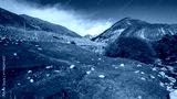 Serene mountain landscape in Kyrgyzstan's Ala Archa National Park. A tranquil stream flows through a grassy valley, framed by majestic mountains under a vibrant sky. Ideal for travel, nature, and