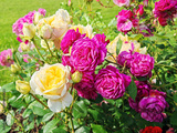 Beautiful bushes are blooming in the park. Lots of beautiful summer flowers. Lush bright flowering in the garden.
