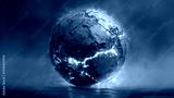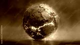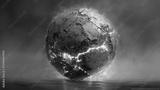 Spherical earth chunk with cracked rock exterior and glowing magma veins underneath,