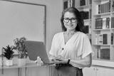 Portrait mature woman teacher, educational behavioral specialist with laptop in classroom