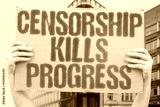 "Censorship Kills Progress" A protest against censorship, defending free speech, open debate, and access to information. FREEDOM. RIGHTS. SPEECH. EXPRESSION. INFORMATION. JUSTICE. DEMOCRACY