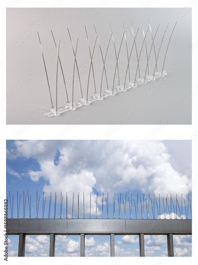 Protective metal rod structure for bird prevention and property defense. Great for building management services, anti-pest product developers, and security installers