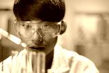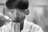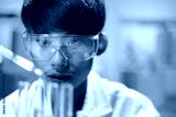 Scientists working in Laboratory using pipette dropping liquid sample into test tube.