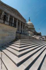 Congress under a clear sky. Congress is the historic symbol of American democracy. Congress in Washington, DC. The Capitol dome rising over Capitol Hill. Washington DC skyline near Congress.