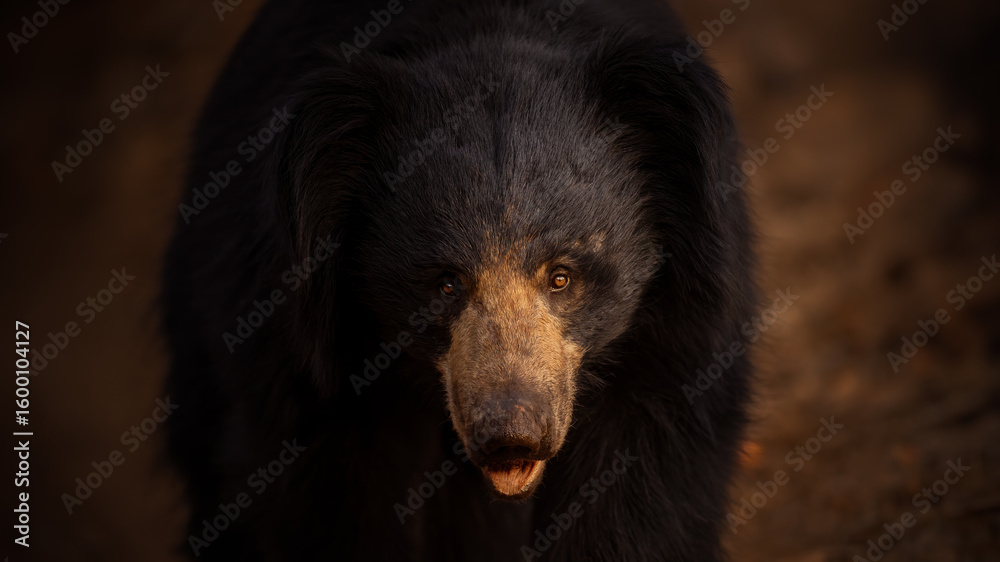 Sloth bear in the nature habitat. Wild animal in the nature. Wild India. Melursus ursinus. Amazing nature treasure of Asia. Beautiful wild animals.