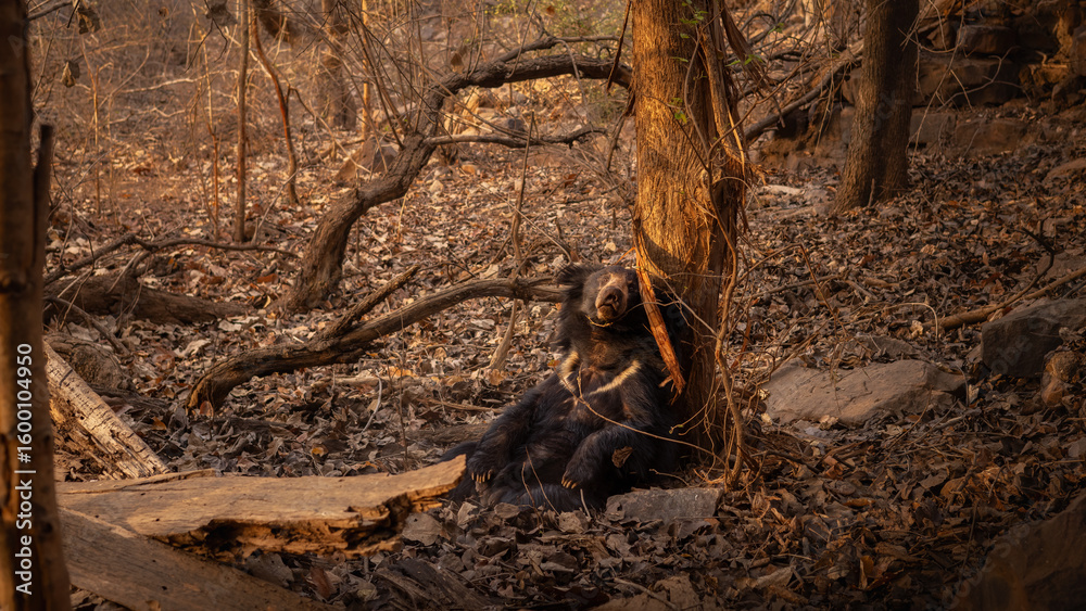 Sloth bear in the nature habitat. Wild animal in the nature. Wild India. Melursus ursinus. Amazing nature treasure of Asia. Beautiful wild animals.