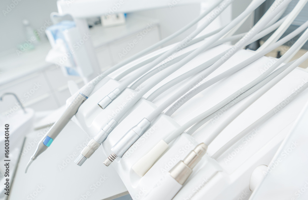 Dental Tools Arranged Neatly on a Treatment Chair in a Modern Dental Clinic