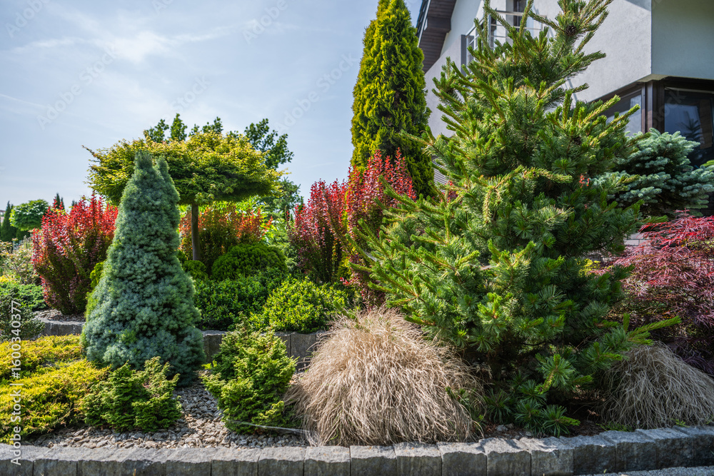Beautiful Garden Landscape With Various Plants in Lush Green Surroundings During Daylight