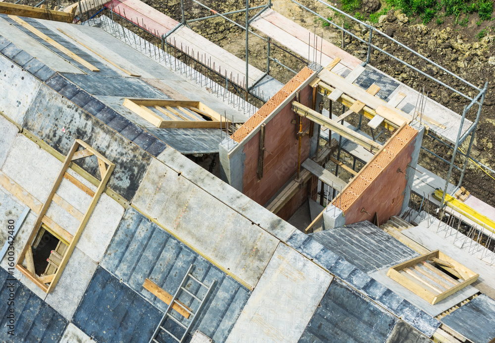 Construction Progress of a Modern Building With Scaffolding at a Rural Site