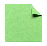 Green isolated cut out blank paper note cardboard with folded corner dog-ear earmark and copy space for text, transparent png background design element