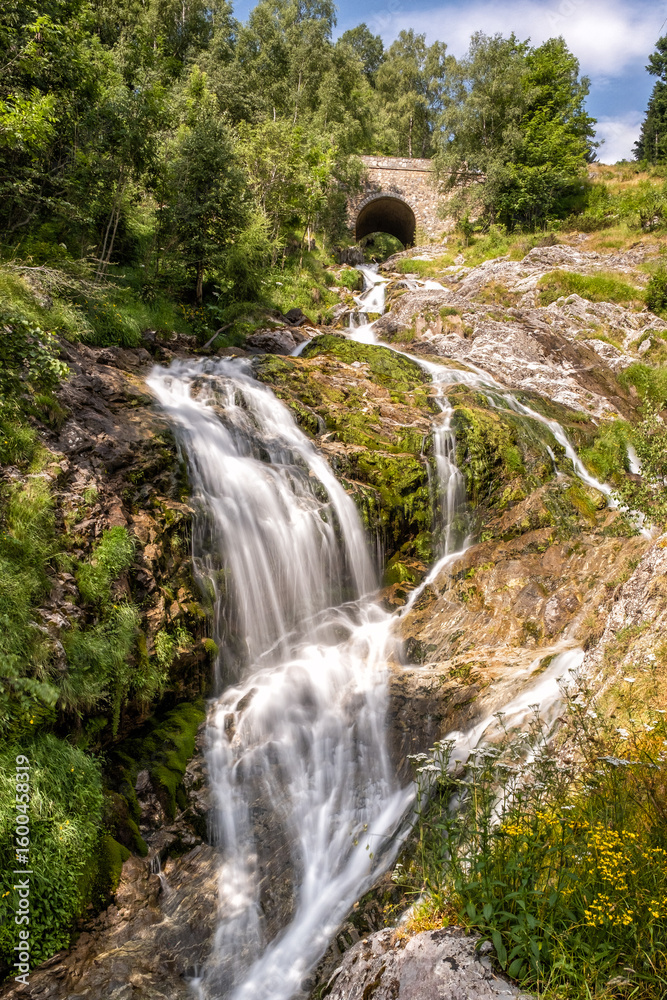 Water cascades down the mountain and through a stone tunnel just outside Gavarnie in the French Pyrenees