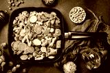 Mixed frozen vegetables in a pan, ready to cook. Close-up. Organic frozen vegetables.