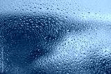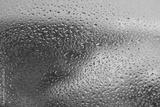 Soft focus through glass with wet water drops. Abstract naatural blur beige, black background.