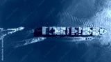 Aerial of cargo ship carrying container for export cargo from cargo yard port to other ocean concept smart freight shipping ship top view