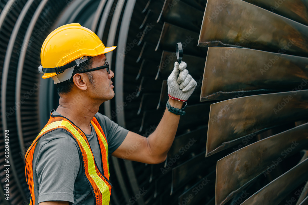 Professional Asian engineer male working service power plant turbine fan blade electrical generator
