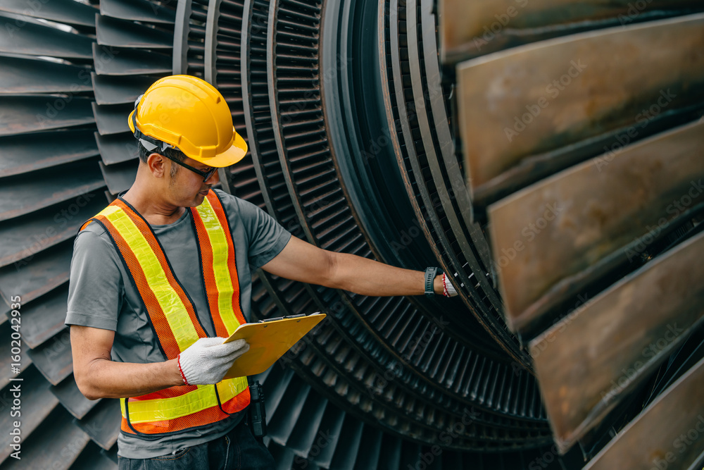 Professional Asian engineer male working service power plant turbine fan blade electrical generator