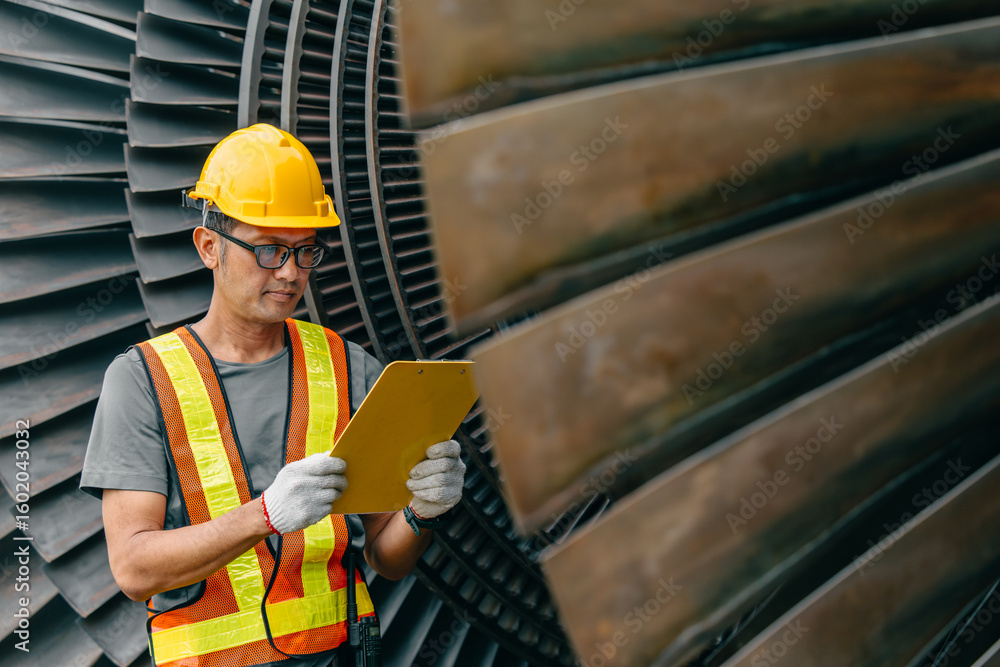 Professional Asian engineer male working service power plant turbine fan blade electrical generator