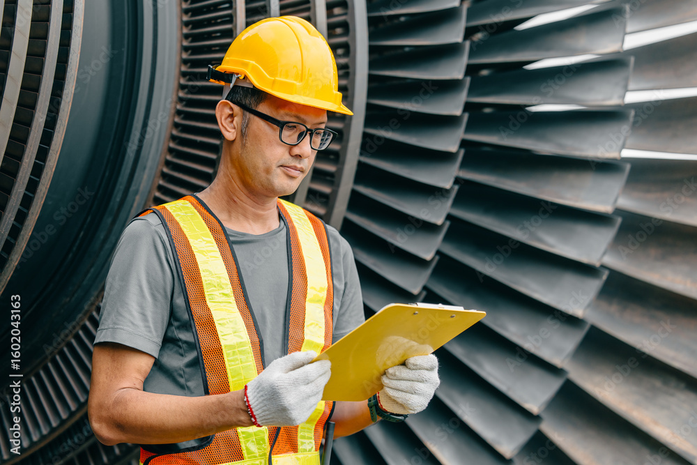 Professional Asian engineer male working service power plant turbine fan blade electrical generator