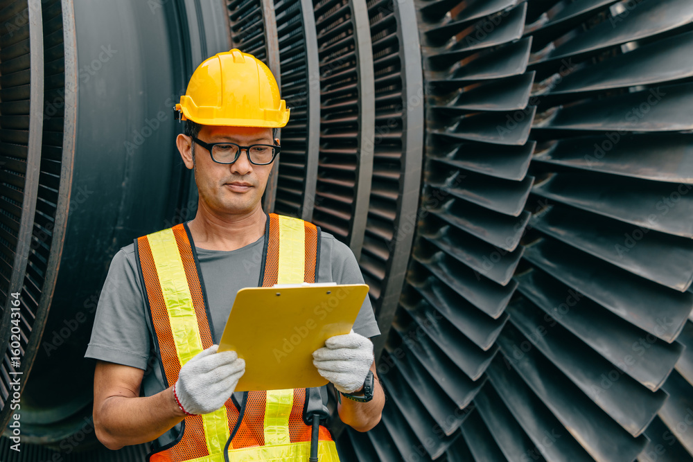 Professional Asian engineer male working service power plant turbine fan blade electrical generator