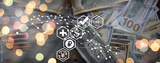 Dollars bills. Dollars background. Background of different us dollar banknotes. Finance concept.