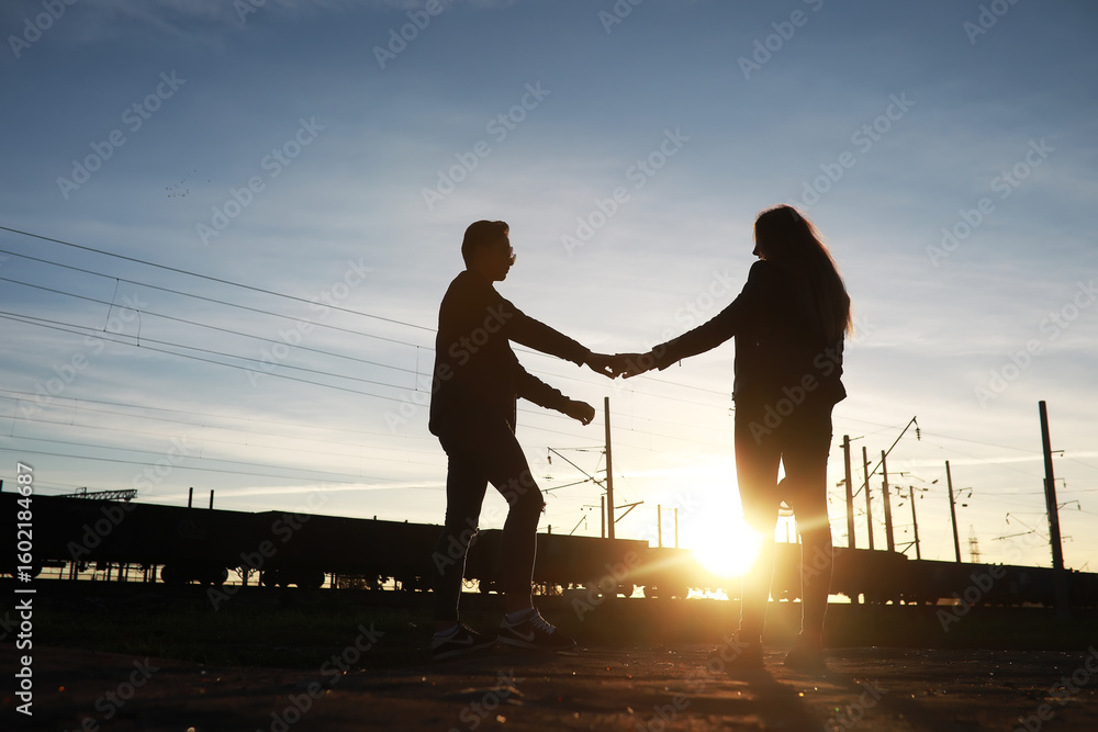Loving couple walking in casual clothes