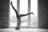 The girl in yoga on the rug