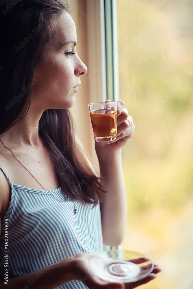 A girl at the window in the house