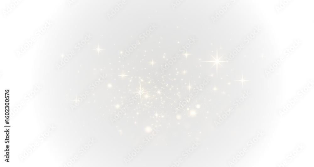 Luminous dust and glowing sparkles with light burst. Magical PNG background