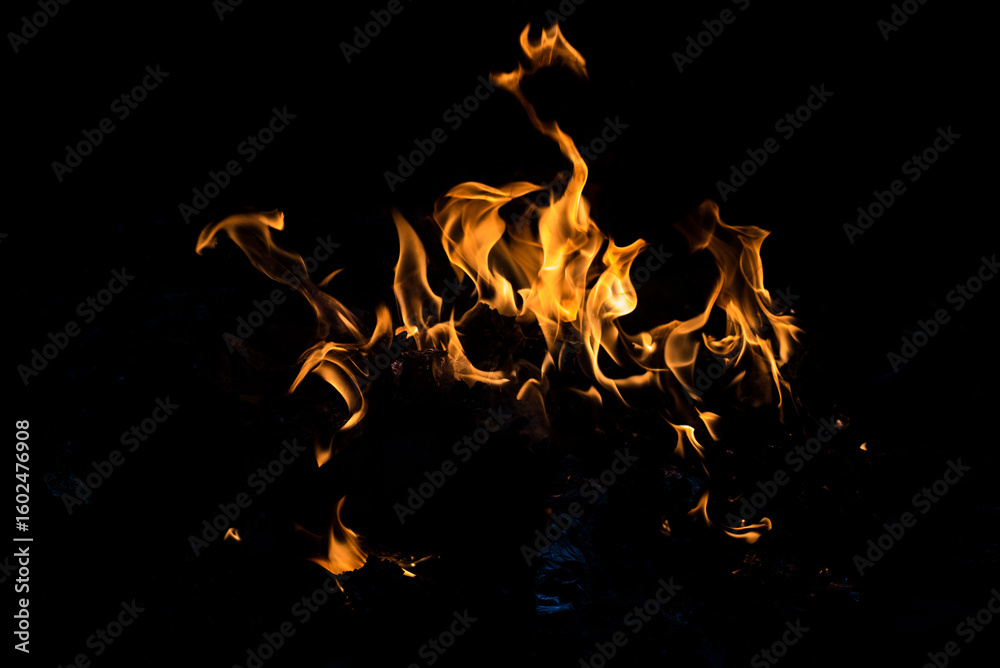 Bright orange flames burning against a dark black background, creating a dramatic and powerful visual ideal for concepts of heat, energy, danger, and survival