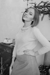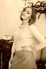 Soft photo of fresh young woman in pink tender sweater smiling. Pretty girl enjoying early sunny morning at home.