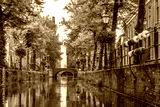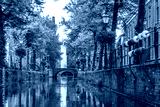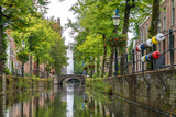 Colorful attributes hang from the fences along a canal through beautiful historic Amersfoort, the Netherlands