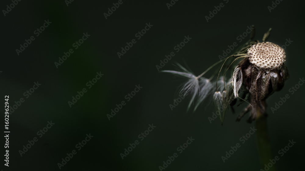 Dandelion empty flower bud with blur green background 16x9 with place for text macro