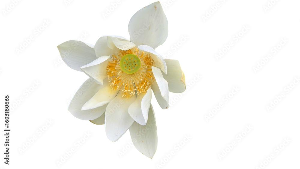 White Lotus Flower (Nelumbo nucifera) PNG. Sacred Aquatic Bloom for Spiritual, Botanical, and Zen-Themed Designs. Transparent Background.