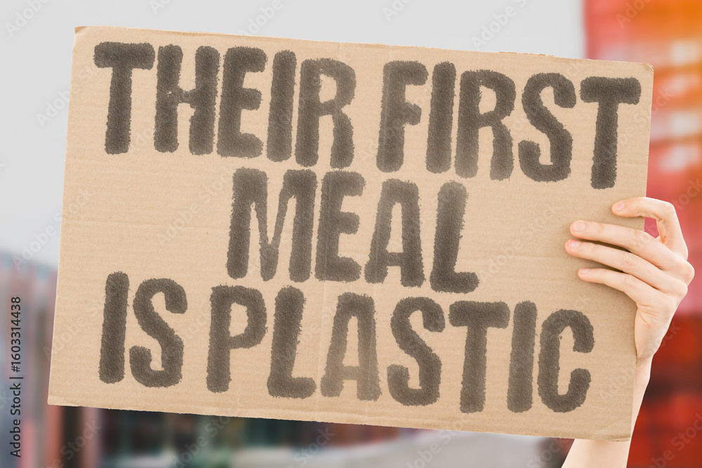 "Their First Meal is Plastic" A powerful warning about ocean pollution harming newborn wildlife and marine ecosystems. POLLUTION. WILDLIFE. OCEAN. TOXINS. DAMAGE. CRISIS. ECOLOGY