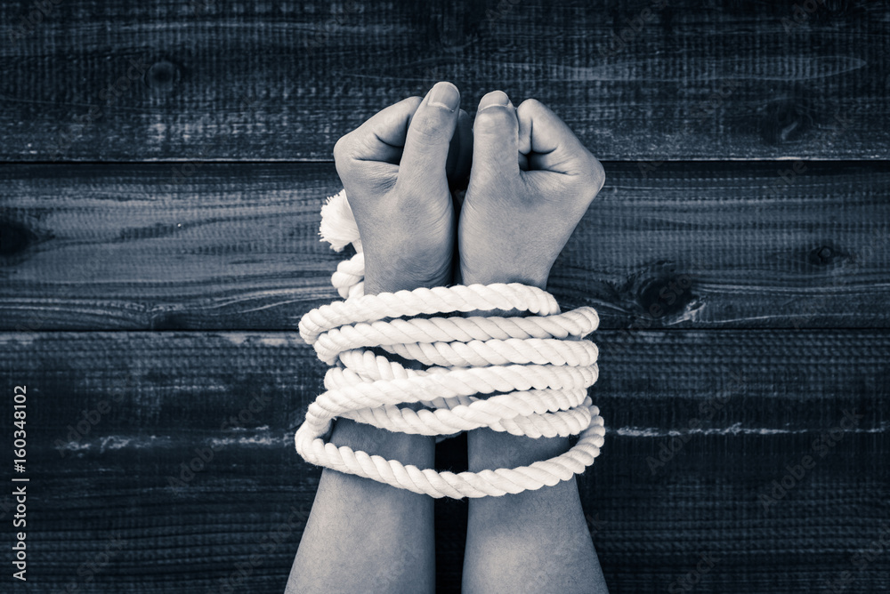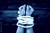 ロープで縛られた手