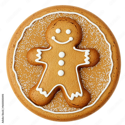 Festive Gingerbread Cookie On Round Base. Sweet Treat For The Holiday Season. Perfect For Christmas Or Winter Themed Designs.