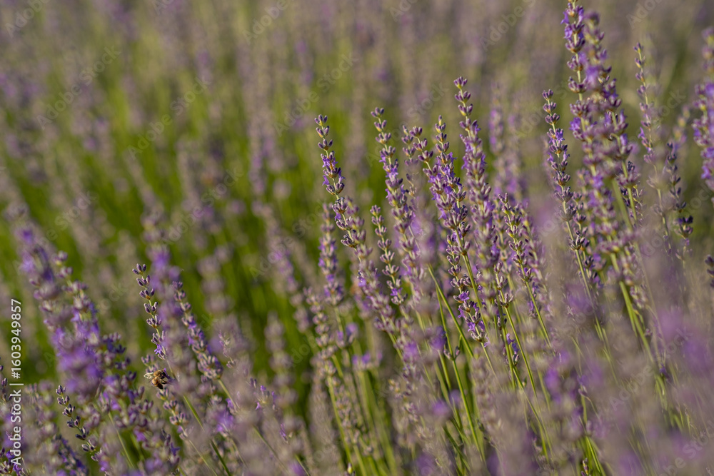 Lavender Fields in Full Bloom During Golden Hour With Vibrant Purple Hues and Lively Insect Activity